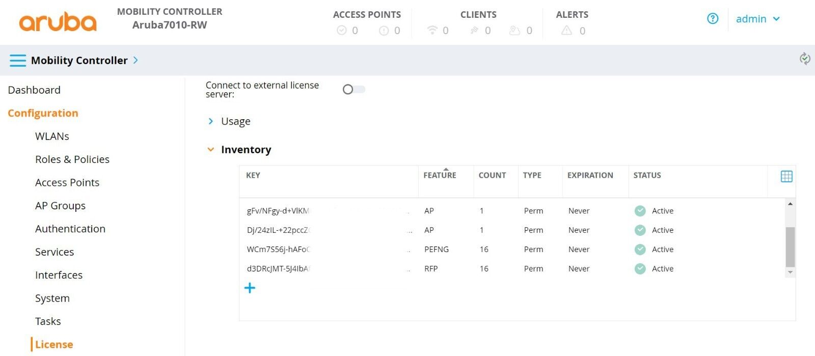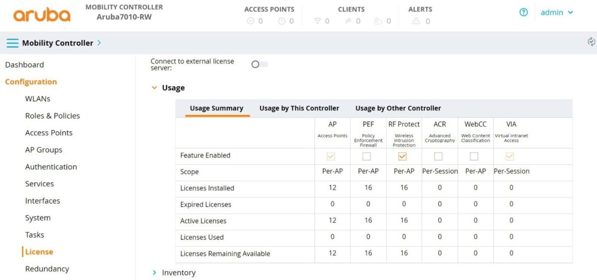 Aruba 7030-RW Wireless LAN Controller ARCN7030 JW686A, License 40(AP/PEFNG/RFP)