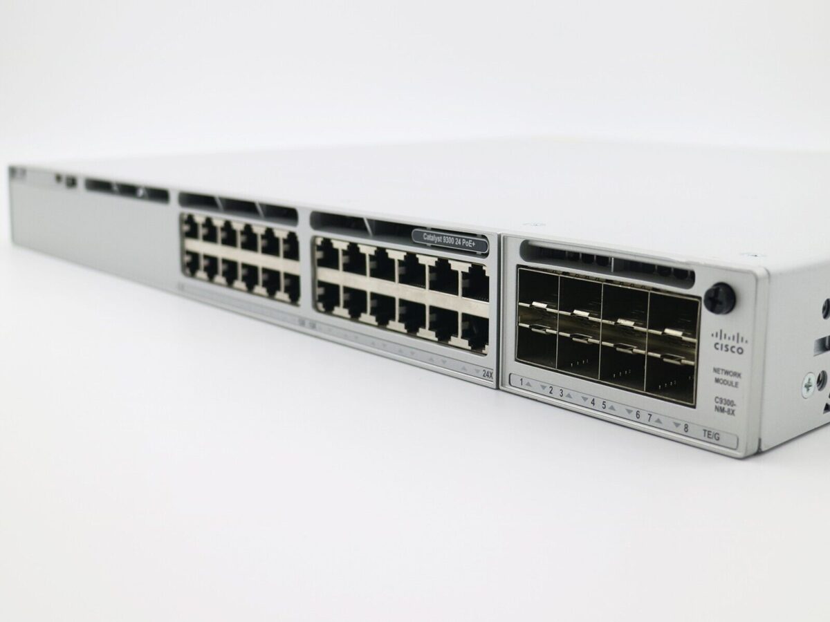 Cisco C9300-24P-E PoE+ with C9300-NM-8X UplinkCisco Catalyst C9300-24P-E Layer 3 with 24-Port Gigabit Ethernet PoE+ with 10G Uplink Network Module C9300-NM-8X!The Cisco® Catalyst® 9300 Series Switches are Cisco’s lead stackable enterprise switching platform built for security, IoT, mobility, and cloud. C9300-24P-E is 24-port PoE+ Gigabit Ethernet Layer 3 switch wit Network Essential license. This Catalyst C9300-24P-E is the next generation of the industry’s most widely deployed switching platform with the most flexible uplink architecture.Key Specification:24-port Gigabit Ethernet PoE+Modular Uplinks C9300-NM-8X 8x10G ModuleCisco Network Essential Permanent LicensePowered by Cisco PWR-C1-715WAC PSUThe switch serial number is clean. The Serial number can be removed from our Cisco Smart Account that can be transitioned into yours.Show Version:Switch#show versionCisco IOS XE Software, Version 16.06.09Cisco IOS Software [Everest], Catalyst L3 Switch Software (CAT9K_IOSXE), Version 16.6.9, RELEASE SOFTWARE (fc3)Technology Package License Information:—————————————————————–Technology-package                    Technology-packageCurrent              Type              Next reboot——————————————————————network-essentials   Permanent       network-essentialsdna-essentials       Subscription    dna-essentialscisco C9300-24P (X86) processor with 1392499K/6147K bytes of memory.Processor board ID 1 Virtual Ethernet interface28 Gigabit Ethernet interfaces8 Ten Gigabit Ethernet interfaces2 Forty Gigabit Ethernet interfaces2048K bytes of non-volatile configuration memory.8388608K bytes of physical memory.1638400K bytes of Crash Files at crashinfo:.11264000K bytes of Flash at flash:.1945600K bytes of USB Flash at usbflash0:.0K bytes of WebUI ODM Files at webui:.Base Ethernet MAC Address          : Motherboard Assembly Number    : 73-18271-03Motherboard Serial Number           : …..Model Revision Number               : A0Motherboard Revision Number   : A0Model Number                        : C9300-24PSystem Serial Number                : …..Switch  Ports  Model   SW Version SW Image               Mode——  —–  —–               ———-         ———-             —-*    1  38     C9300-24P      16.6.9             CAT9K_IOSXE  INSTALL Show Inventory:Switch#show inventoryNAME: “c93xx Stack”, DESCR: “c93xx Stack”PID: C9300-24P         , VID: V02  , SN: NAME: “Switch 1”, DESCR: “C9300-24P”PID: C9300-24P         , VID: V02  , SN: NAME: “Switch 1 – Power Supply B”, DESCR: “Switch 1 – Power Supply B”PID: PWR-C1-715WAC     , VID: V02  , SN: NAME: “Switch 1 FRU Uplink Module 1”, DESCR: “8x10G Uplink Module”PID: C9300-NM-8X       , VID: V01  , SN: Show Environment:Switch#show environment allSwitch 1 FAN 1 is OKSwitch 1 FAN 2 is OKSwitch 1 FAN 3 is OKFAN PS-1 is NOT PRESENTFAN PS-2 is OKSwitch 1: SYSTEM TEMPERATURE is OKInlet Temperature Value: 25 Degree CelsiusTemperature State: GREENYellow Threshold : 46 Degree CelsiusRed Threshold    : 56 Degree CelsiusHotspot Temperature Value: 50 Degree CelsiusTemperature State: GREENYellow Threshold : 105 Degree CelsiusRed Threshold    : 125 Degree CelsiusSW  PID                  Serial#     Status     Sys Pwr   PoE Pwr  Watts–   ——————   ———-  ———- ——-   ——-   —–        1A   Not Present1B   PWR-C1-715WAC    OK          Good      Good      715Specifications:Brand / ModelCisco C9300-24P-EAdd-on Module8x10G Uplink Module C9300-NM-8XSwitch FeatureCisco Network Essential – Permanent LicensePorts24 x Gigabit Ethernet Ports PoE+Switching Capacity208 GbpsSwitching capacity with stacking688 GbpsDimensions (H x W x D) / Weight4.4 x 44.5 x 40.9 cm / 7.4kgInput voltage100 – 240 VACDefault Primary PSUPWR-C1-715WACConditionPre-owned. Pulled from working production environmentA-Grade ConditionOur Cisco C9300-24P-E are fully operational and functioning as intended. They have been thoroughly cleaned and tested by our highly skilled engineers to ensure they are in A-Grade working condition before handling to customers. Although some units may have some minor cosmetic such as minor scratches they are guaranteed to work like new.12-Month WarrantyYour purchase of this item from ePanda Australia comes with 12 months warranty. We stand by our products and back any of our equipment. Our warranty covers any hardware faults that may arise within this period.GST Tax InvoiceAll your purchases come with GST included Tax Invoice.What’s in the box:1 x Cisco Catalyst C9300-24P-E (Network Essential)1 x Network Module C9300-NM-8X 8x10G Uplink Module1 x Power Supply PWR-C1-715WAC1 x Power Cable (AU)2 x Rack Mount Kits and AccessoriesWhy buy from us:ePanda-Australia is well-trusted for quality and operates under Australian legitimate ABN.All your purchases are covered under our warranty and a valid GST TAX Invoice.Our products are rigorously tested to ensure their quality before they are handed over to you.Our products are carefully inspected for safety, hygience, cleanliness before handling to you.Your item will be fast shipped from our local store in Melbourne.Shipping and HandlingYour products will be processed and shipped as soon as payment is confirmedShipping discounts may be available for some purchases of multiple items or combined shipment, please be sure to contact us before you pay.You should expect your order to be shipped as scheduled if you don’t receive any email from us.Once your order has been dispatched, we will send you a confirmation email with tracking information. You will be able to track your package directly on the carrier’s website.We guarantee all our products ar